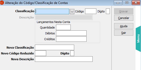 Através desta rotina é possível movimentar uma conta de um grupo para outro (Ex.: De 1.1.01.01.0001 para 1.1.01.02.0001). O sistema transportará os lançamentos e o saldo juntamento com a conta. Poderá alterar também o código reduzido, a classificação e a descrição da conta, ou todos juntos.